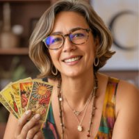 Intuitiva, acolhedora e direta, uno a sabedoria ancestral das cartas com uma mediunidade amorosa e poderosa — a serviço do seu despertar.
